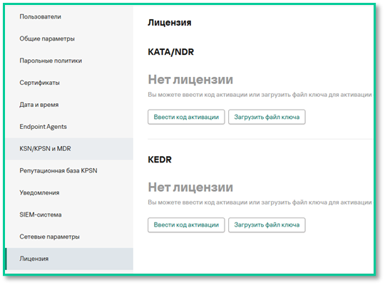 - ✅ Активирована одна из лицензий: KATA, NDR или KATA/NDR
