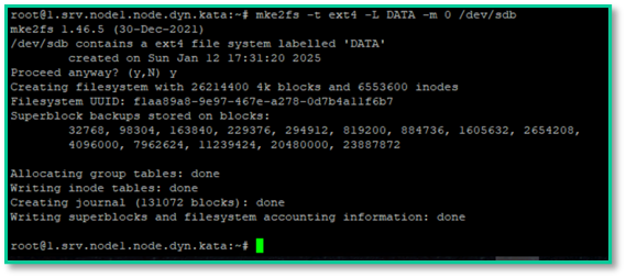 mke2fs -t ext4 -L DATA -m 0 /dev/sdb📸Скриншот 10: Пример вывода команд