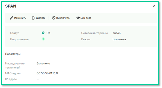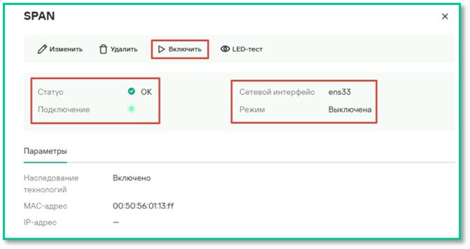 ✅ Режим обработки SPAN-трафика перейдёт в активное состояние.