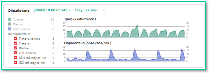 В этом разделе показан общий объем SPAN-трафика, обработанного данным сенсором.