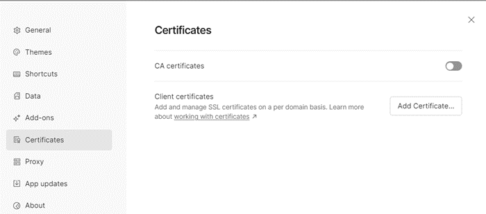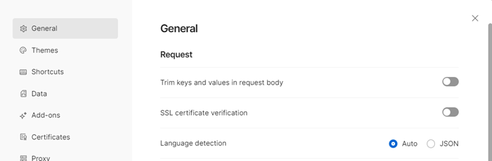 Перейти в подраздел General, отключите меню в строке SSL certificate verification