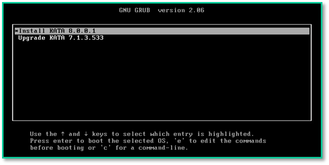 Install KATA 8.0.0.1📸 Скриншот 1: Экран загрузки с выделенным пунктом `Install KATA 8.0.0.1` в меню GRUB.