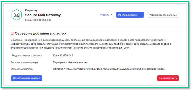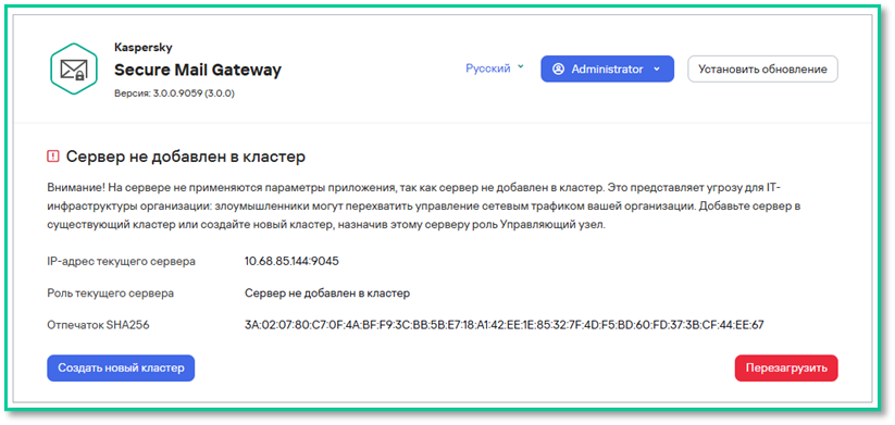 Первоначальная настройка «Kaspersky Secure Mail Gateway» завершена.