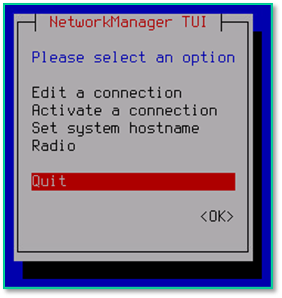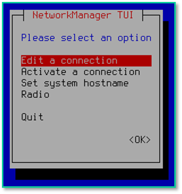 Меню NetworkManager TUI — выбор «Set system hostname»