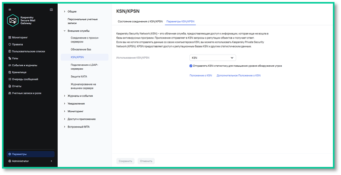 Настройка KSN — «Я согласен участвовать в KSN»