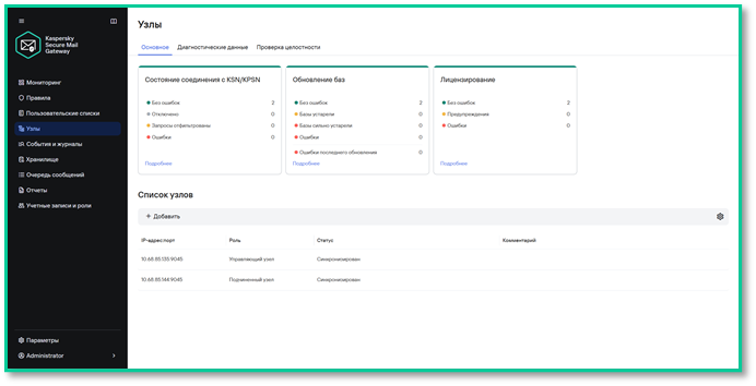 Пограничный почтовый шлюз | KSMG устанавливается на периметре сети и обрабатывает весь входящий и исходящий трафик. Может выступать как MX-запись. | ✅ Полный контроль над mail flow |