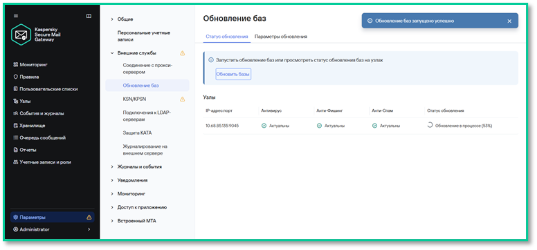 Обновление баз — кнопка «Обновить базы»