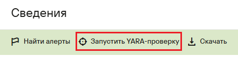 - В разделе Пользовательские правила --> YARA, выбрав необходимое правило и нажав Запустить YARA-проверку