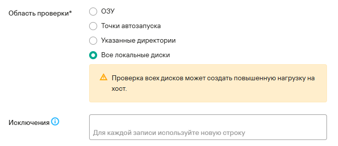 - Все локальные диски - при необходимости проверить файлы, хранящиеся во всех папках локальных дисков. Можно использовать маски * и ? для указания директорий исключения.