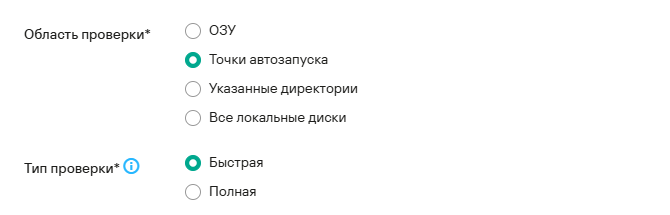 Для данной области задайте тип проверки. Быстрая - проверяются все точки автозапуска, кроме COM-объектов. Полная - проверяются все точки автозапуска и связанные с ними файлы.