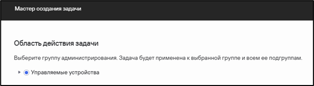 Выбрать группу администрирования на которую будет распространяться действие данной задачи